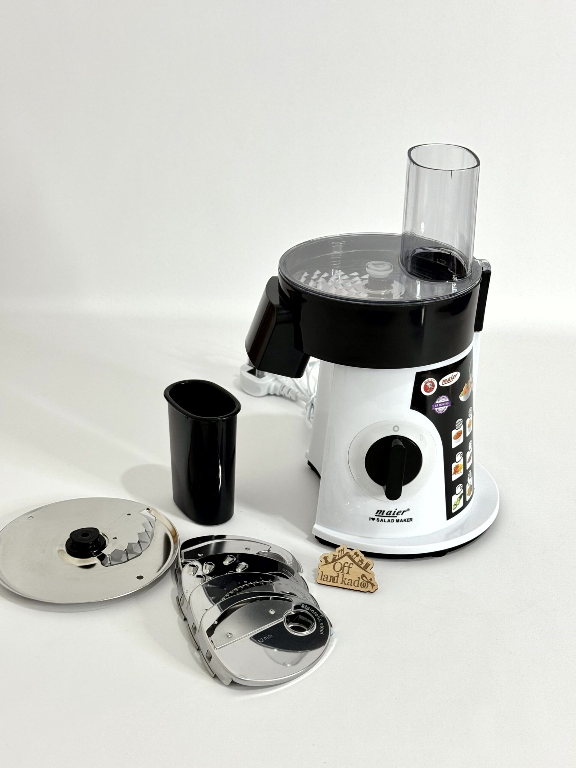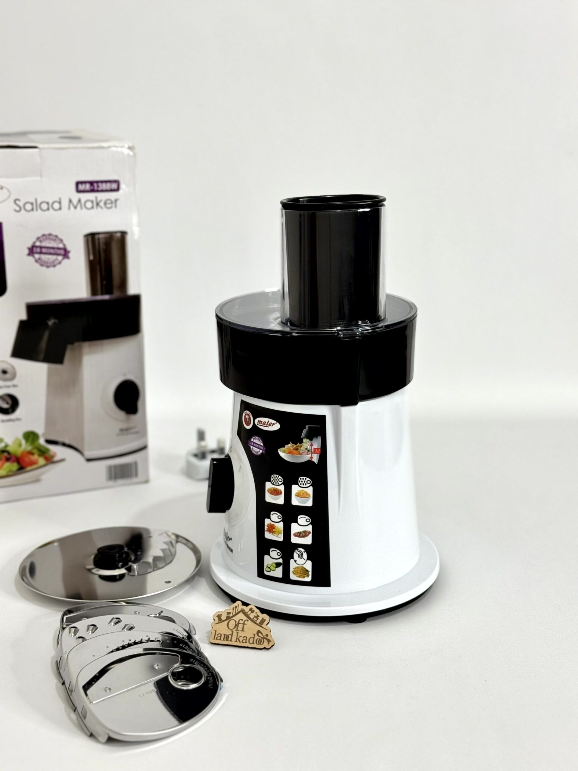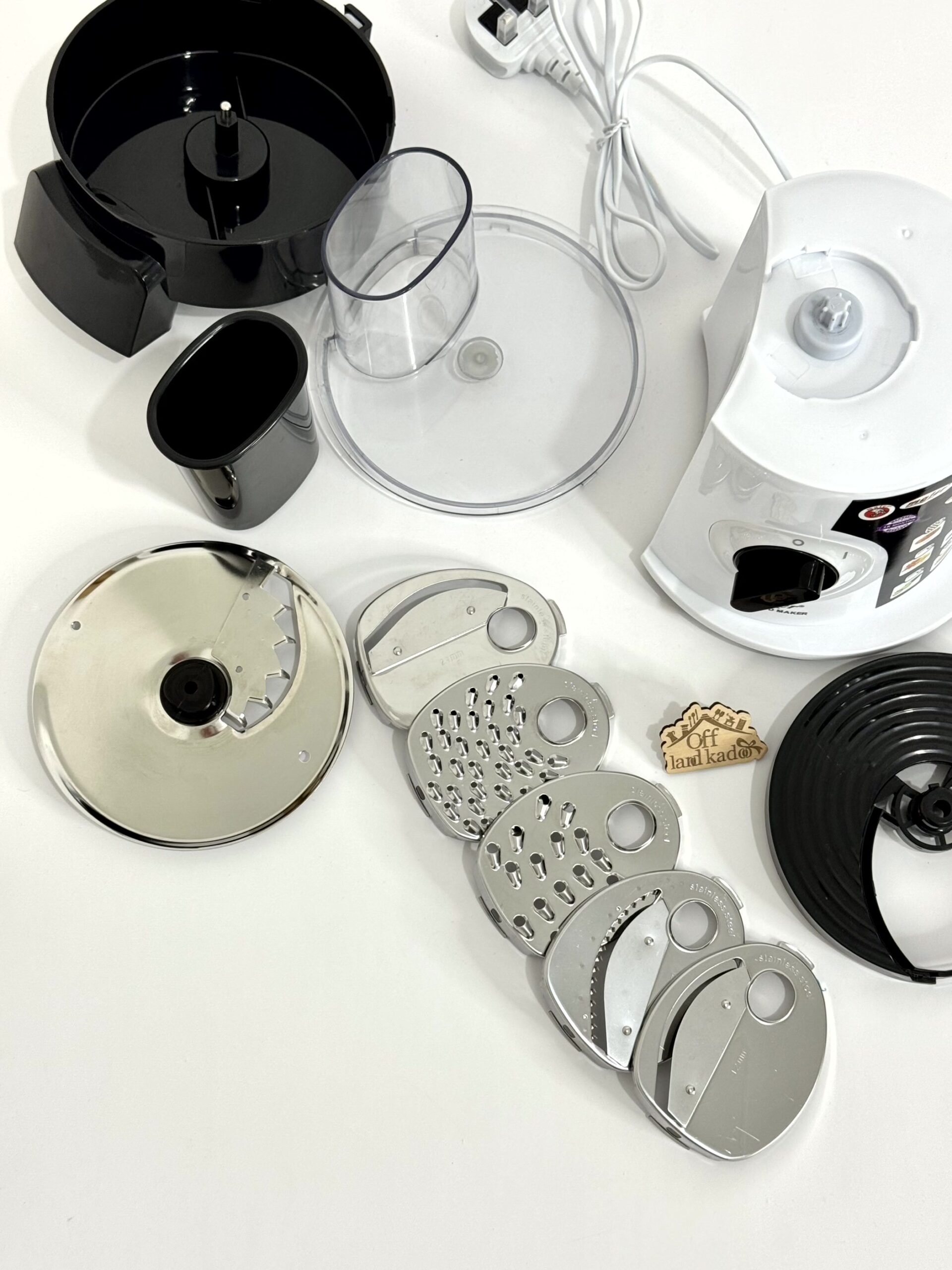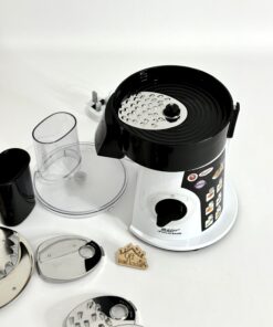 دارای ۶ دیسک استیل ضد زنگ برای ورقه کردن ،رنده کردن و خلال کردن سبزیجات، و خلال سیب زمینی