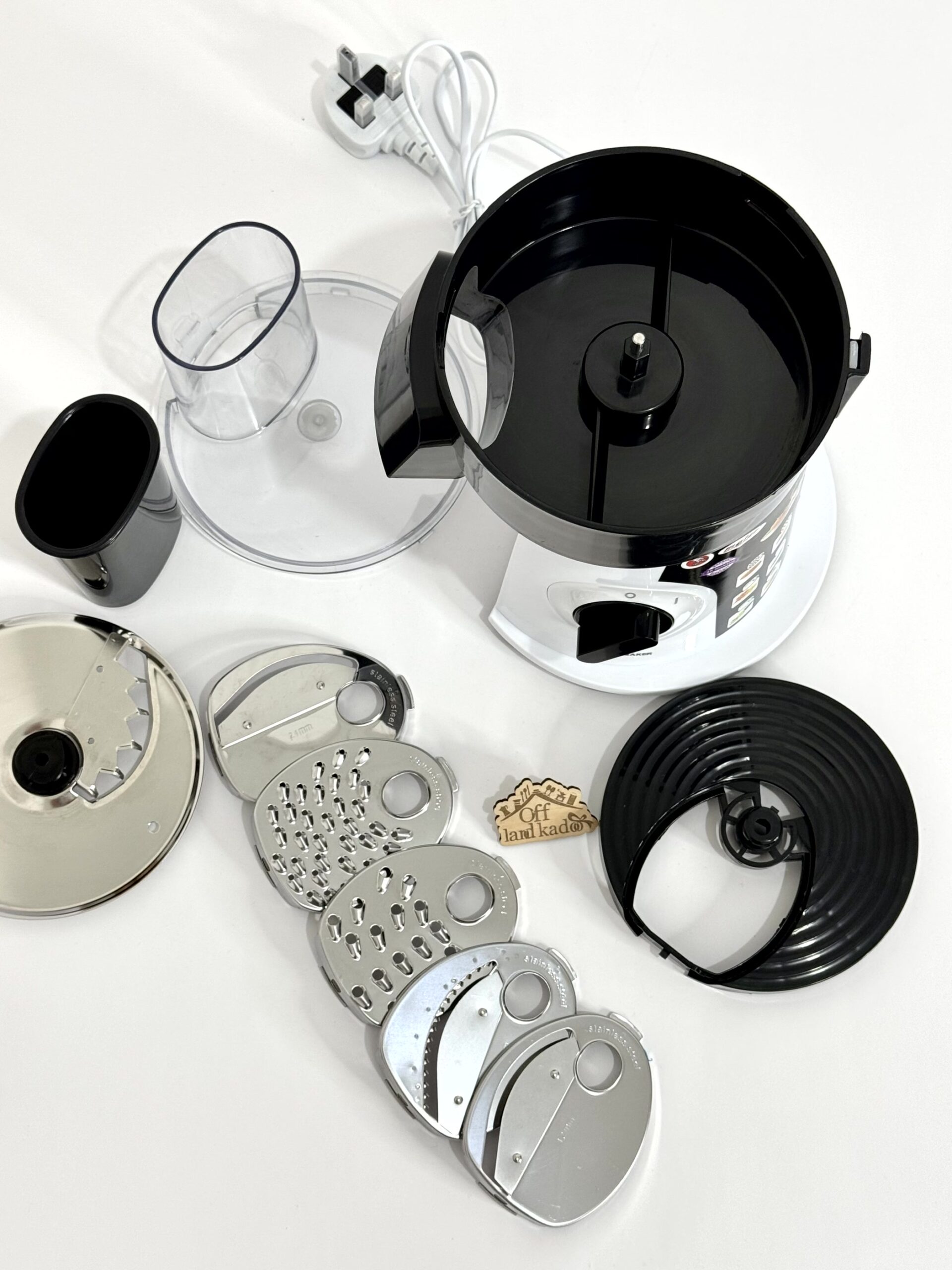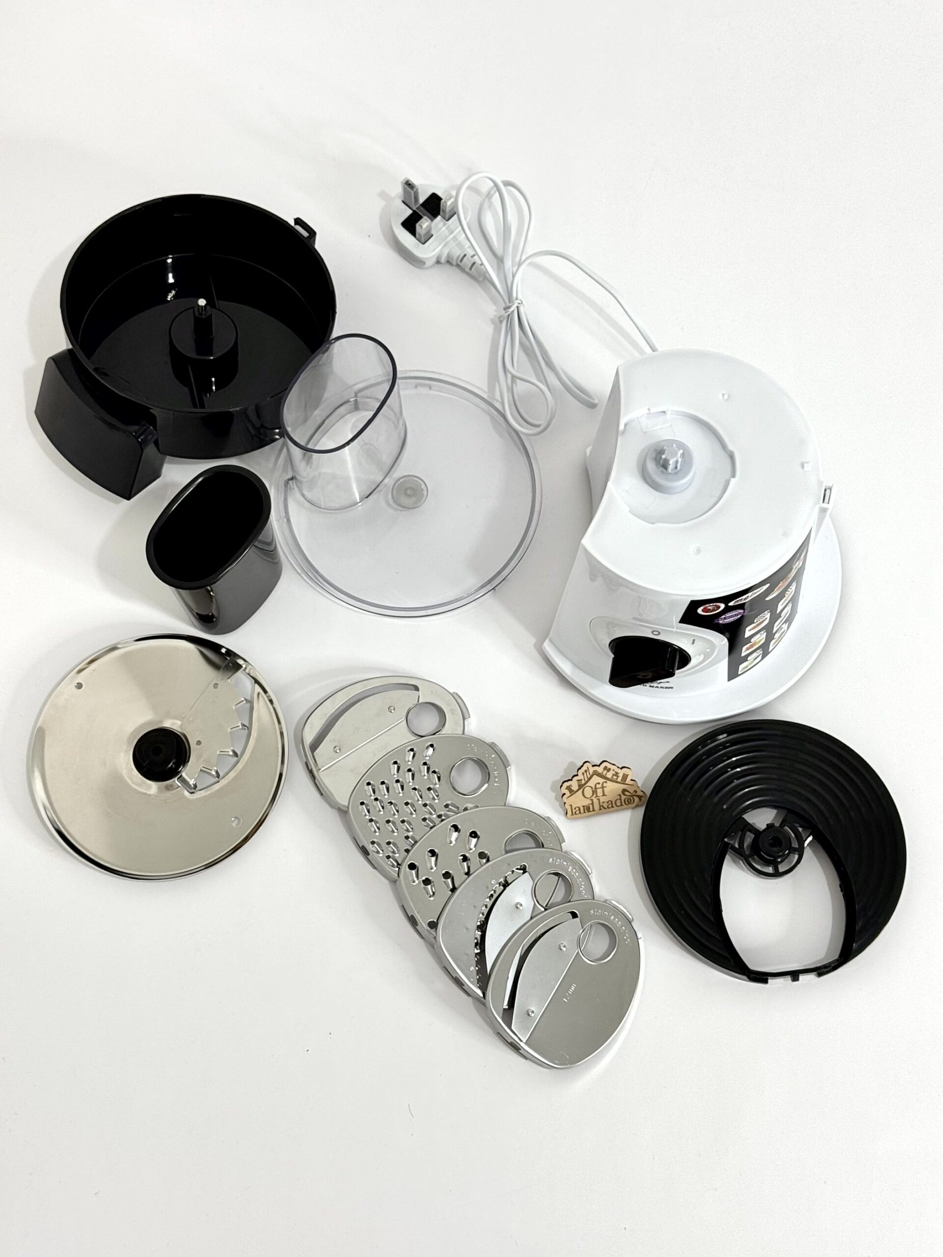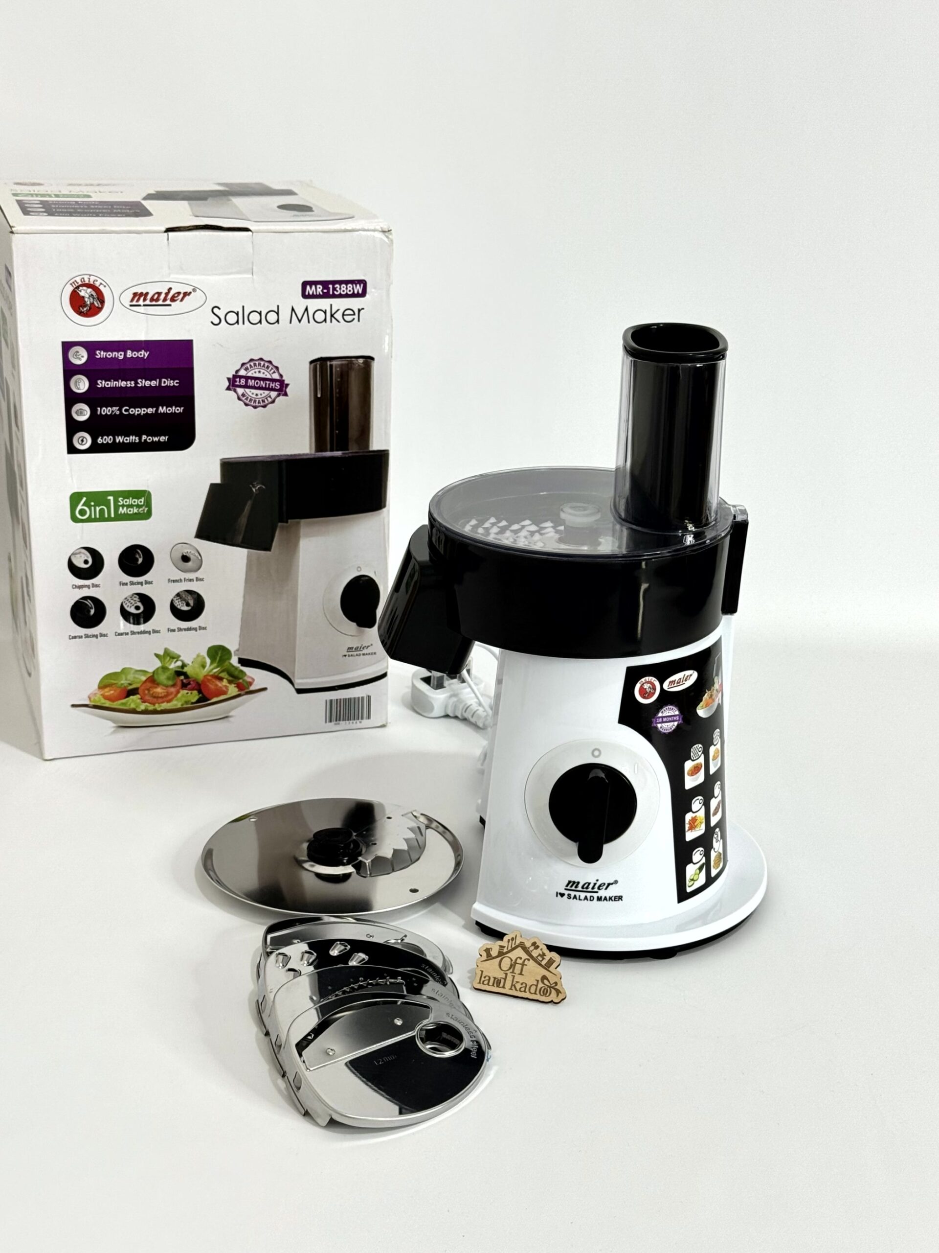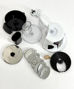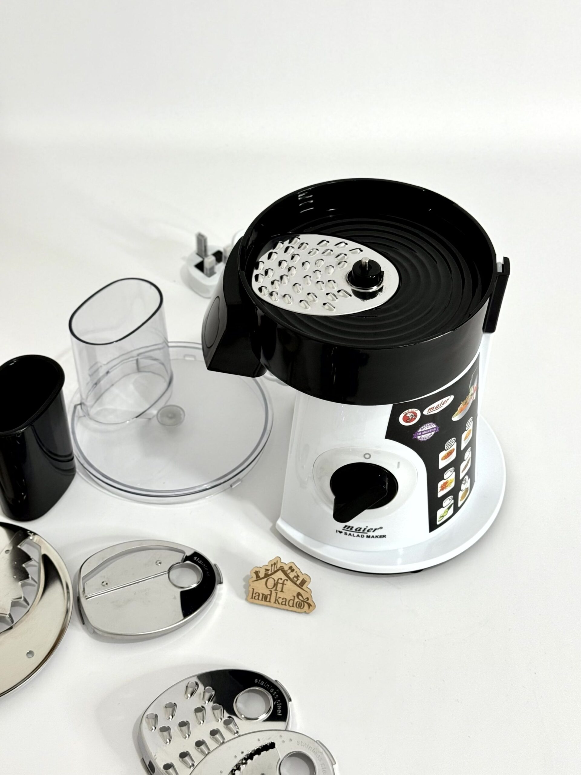 دارای ۶ دیسک استیل ضد زنگ برای ورقه کردن ،رنده کردن و خلال کردن سبزیجات، و خلال سیب زمینی