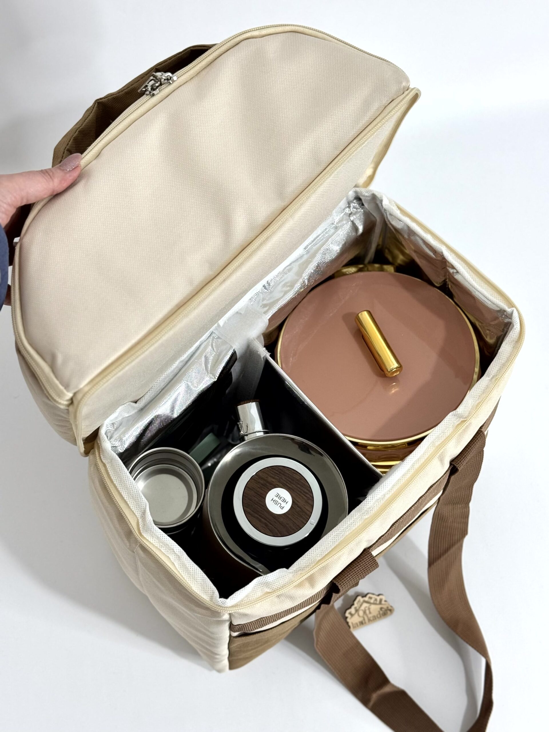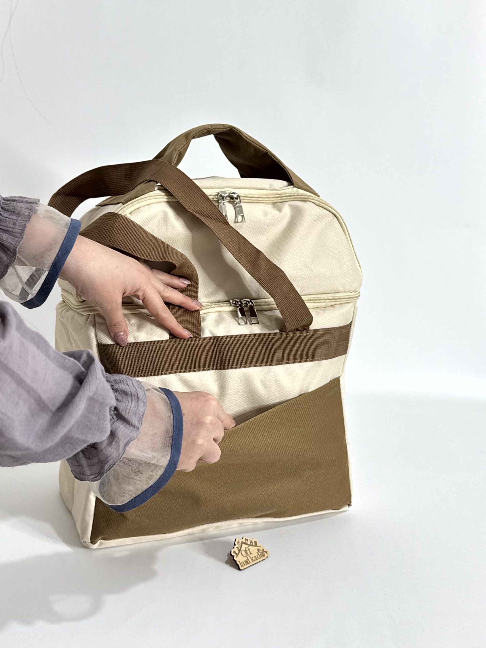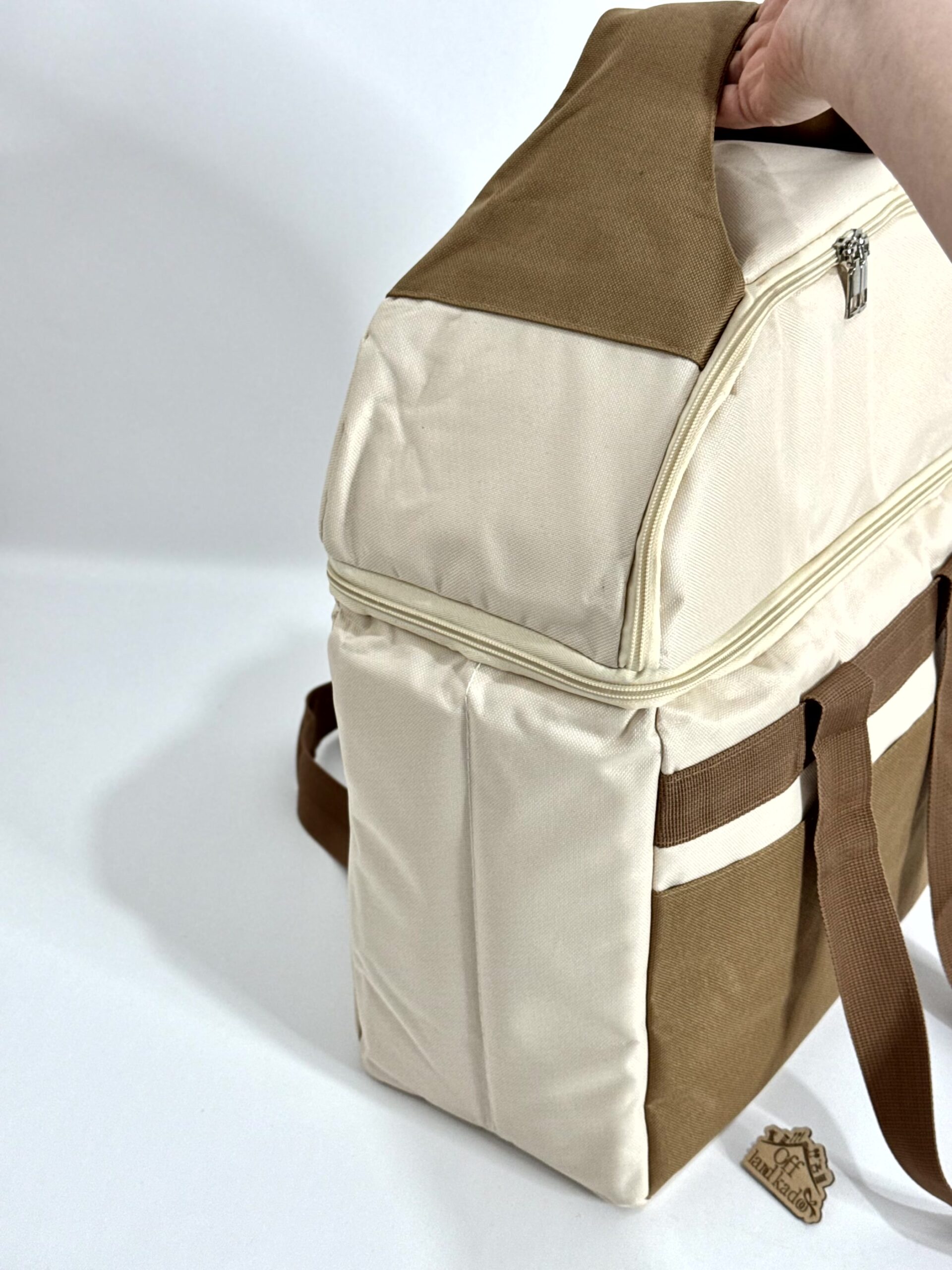 دوقسمت مجزا داره و بالای ساک هم یه کیف عایق بسیار جاداره