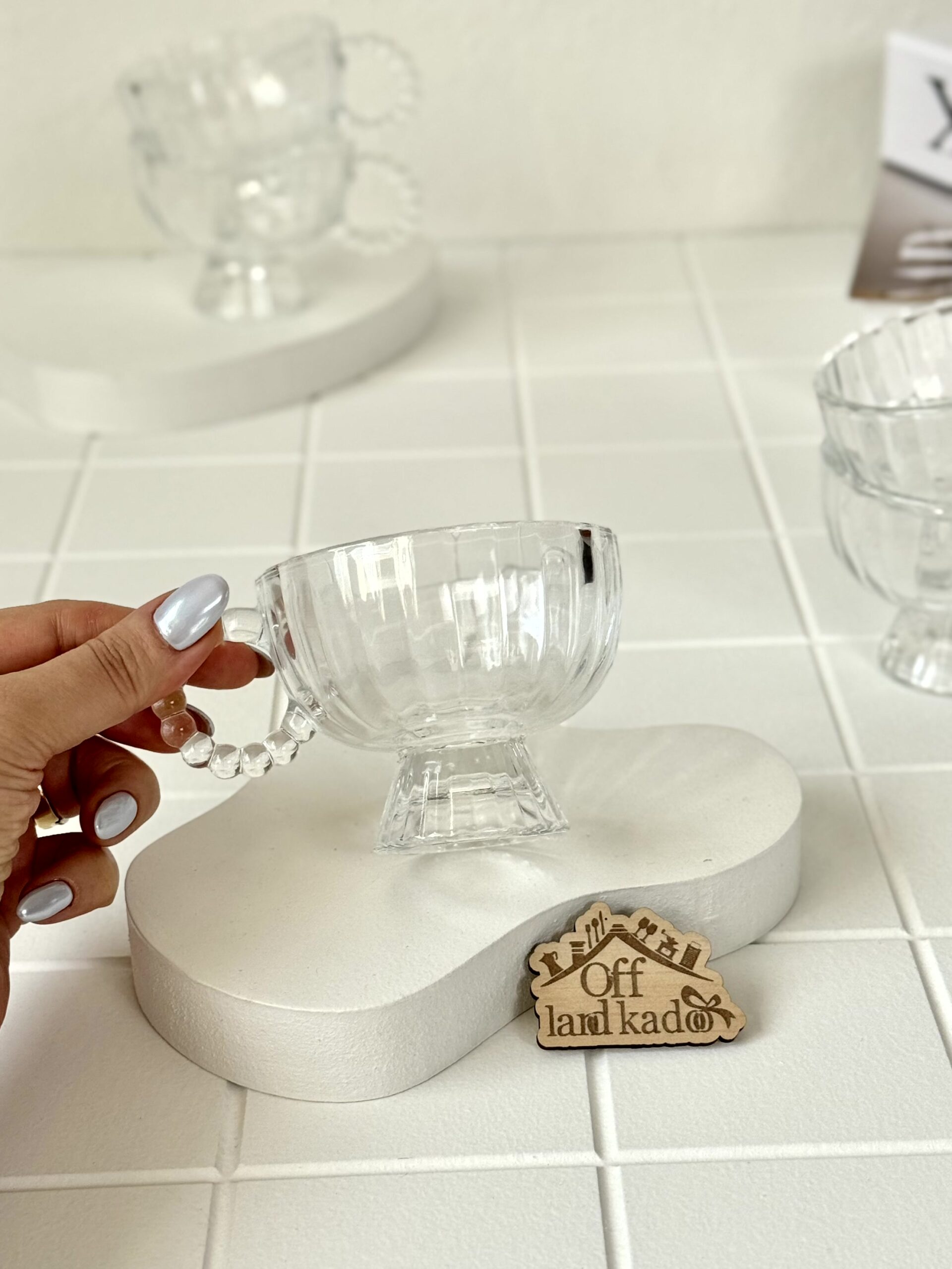 فنجان پایه دار بلور دسته مرواریدی کد 111812