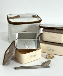دارای ۳ظرف دو جداره هست که یک جداره استیل درجه یک ۳۰۴و یک جداره هم پلاستیک با کیفیت